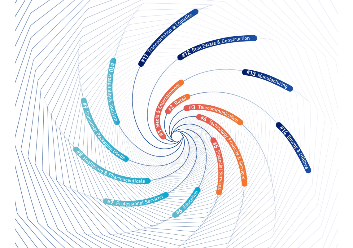 Estas disrupciones son las que finalmente pillan por sorpresa a muchos sectores y empresas líderes que después son desbancadas con gran rapidez, cayendo así, en una especie de vortex digital que cambia todo. En el cual unas industrias están más desafiadas que otras.