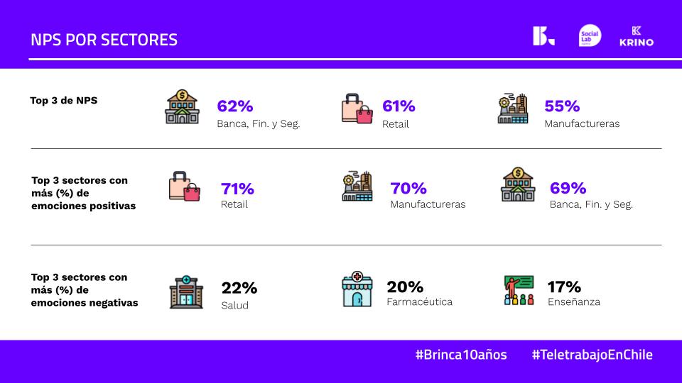 Los tres sectores que muestran una mayor proporción de emociones negativas corresponden a los más exigidos por la pandemia, a saber, salud (22%), farmacéutica (20%) y enseñanza (17%).