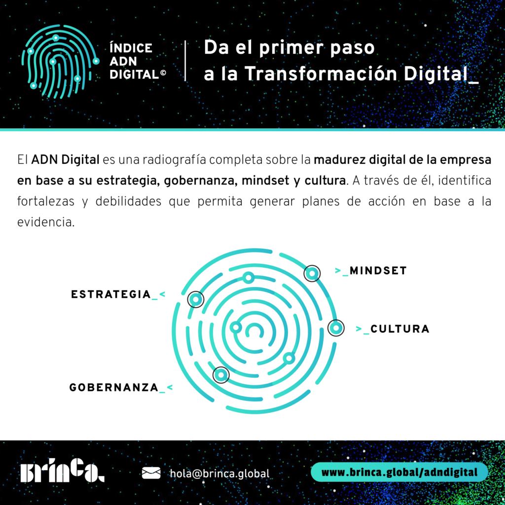 En búsqueda de dar una respuesta es que Brinca desarrolló el índice “ADN Digital”. El cual fue especialmente diseñado para medir la digitalización de las organizaciones y ayudar a crear un plan de trabajo.